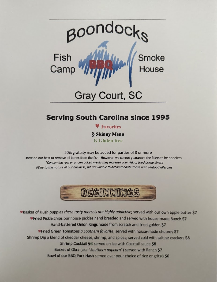 Boondocks Fish Camp & Smoke House Menu